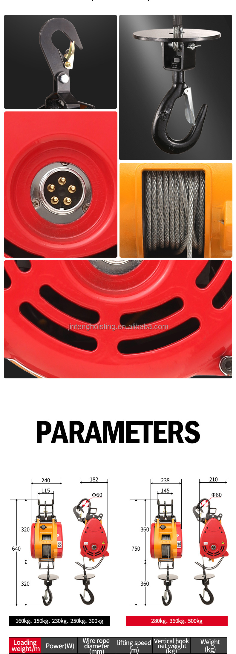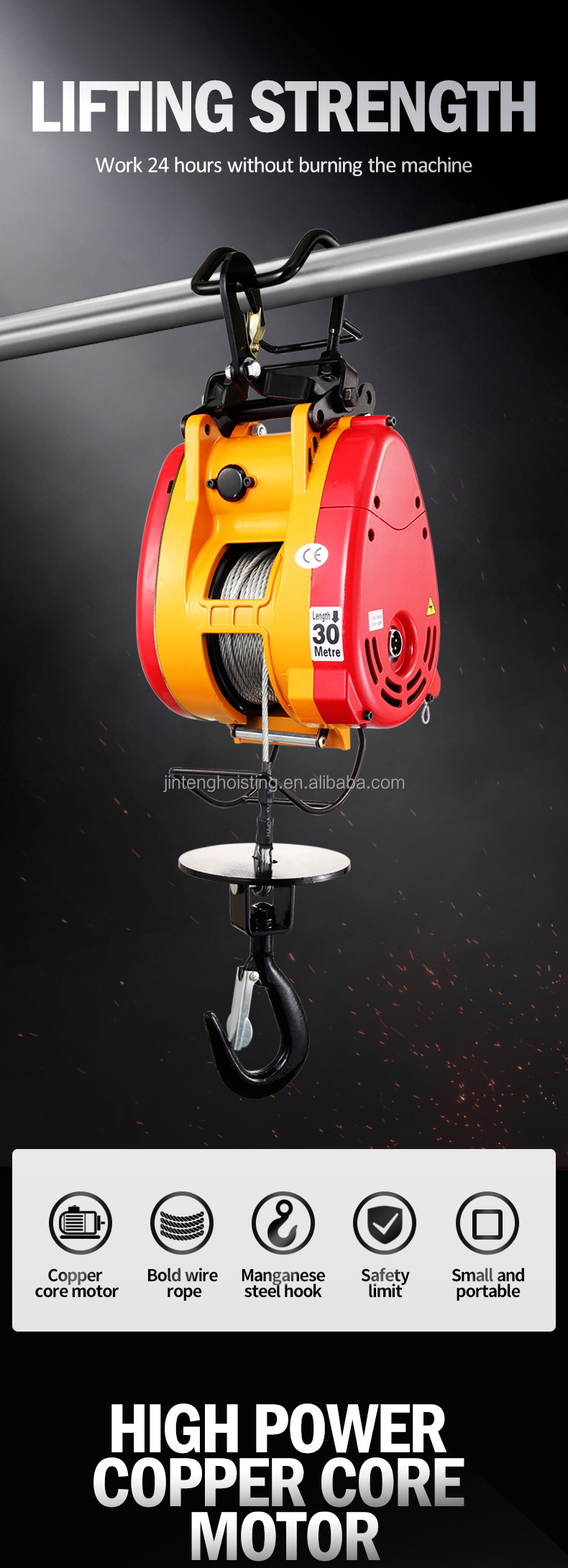 Portable Mini Electric Winch Hoist Fast Speed Hanging Wire Rope Electric Hoist 220V Metal