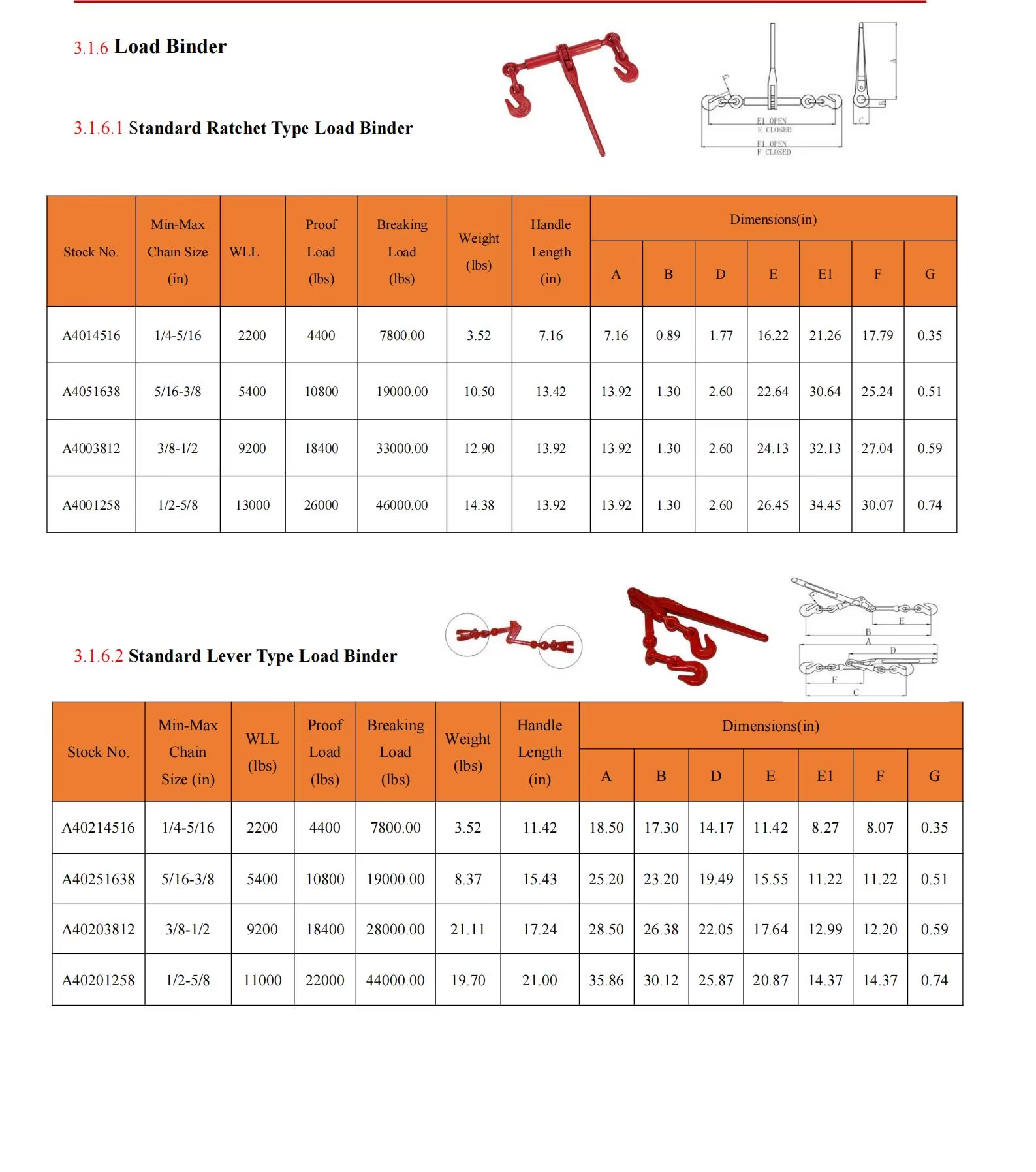 A durable surface coating enhances corrosion resistance, making the binder suitable for outdoor use and harsh working environments. Its robust design and straightforward operation make it an ideal choice for trucking fleets, cargo control systems, construction sites, and heavy equipment securing where dependable performance and compliance with load securing requirements are essential.