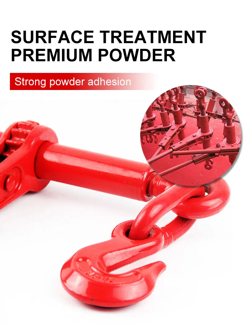 The over-center lever mechanism provides strong mechanical advantage, allowing operators to apply and maintain high chain tension with minimal effort. Once engaged, the locking action holds the chain firmly in place, helping to prevent loosening caused by vibration or dynamic movement during transportation. The forged grab hooks are accurately shaped to ensure a secure fit with standard alloy chains, improving overall load safety.