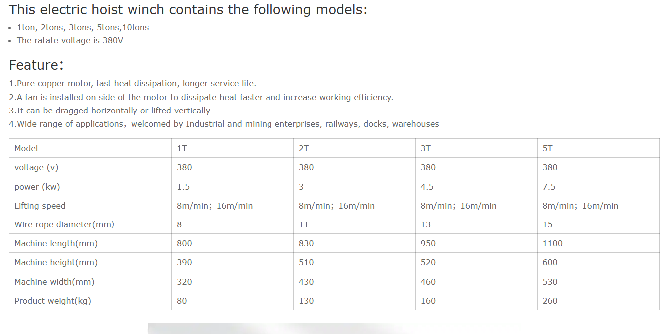 Driven by a high-performance motor and equipped with strong steel cable and automatic braking, it ensures safe, stable, and efficient operation in various environments.