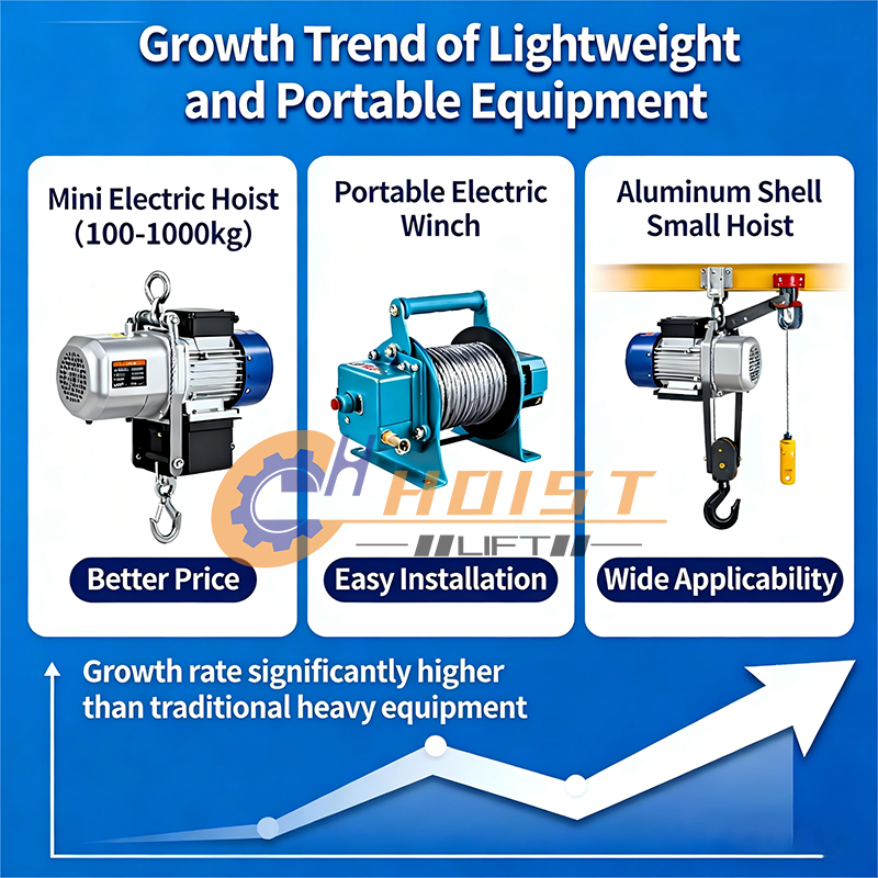 04. Rapid Growth in Lightweight & Portable Lifting DevicesThe demand for light-duty equipment is rising sharply, especially from workshops, small businesses, and maintenance professionals: