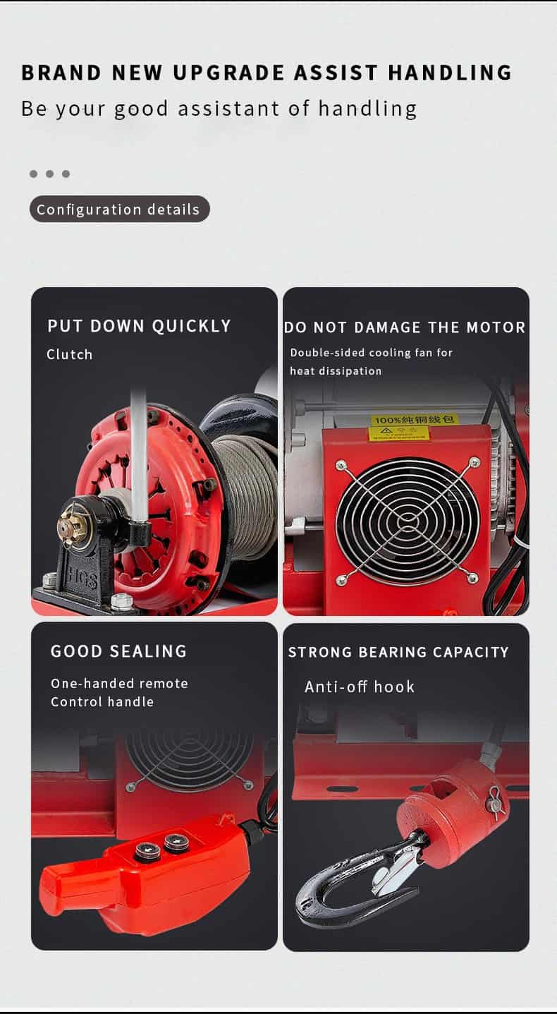 Multifunction Electric Hoist with clutch is a kind of fast speed, light duty, small volume with advantage of tight structure,easy to operate& maintain etc. features lifting equipment