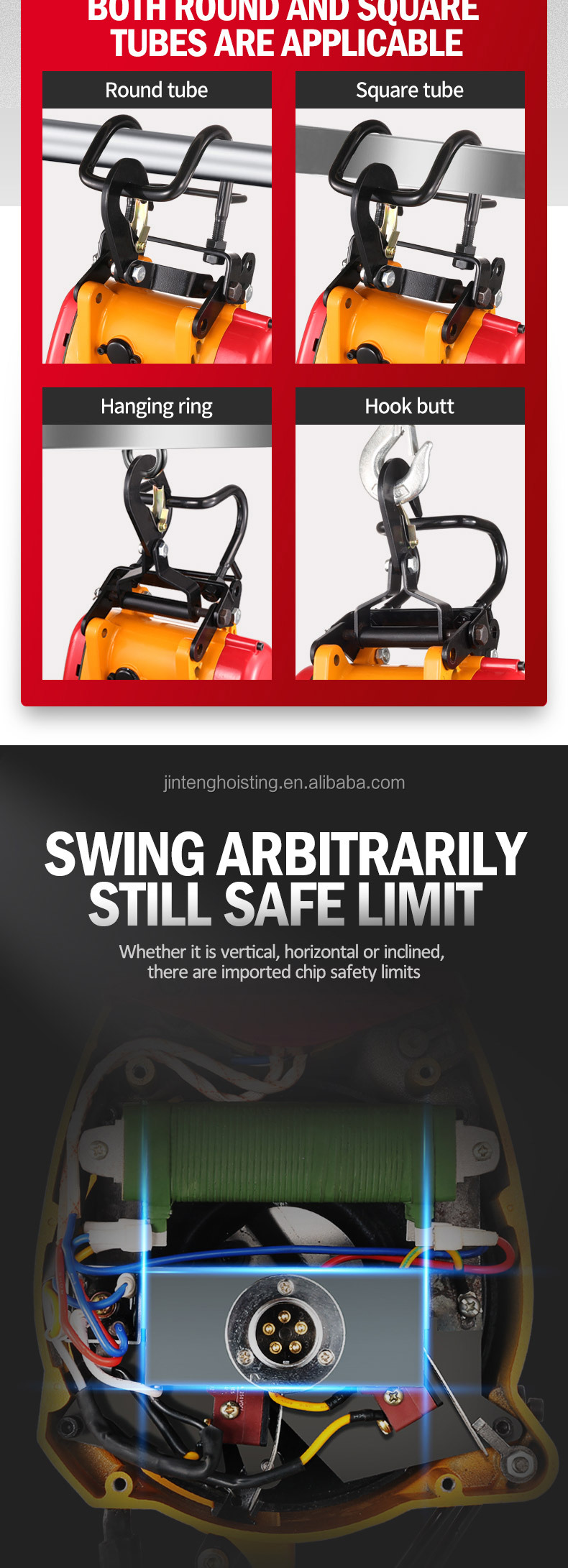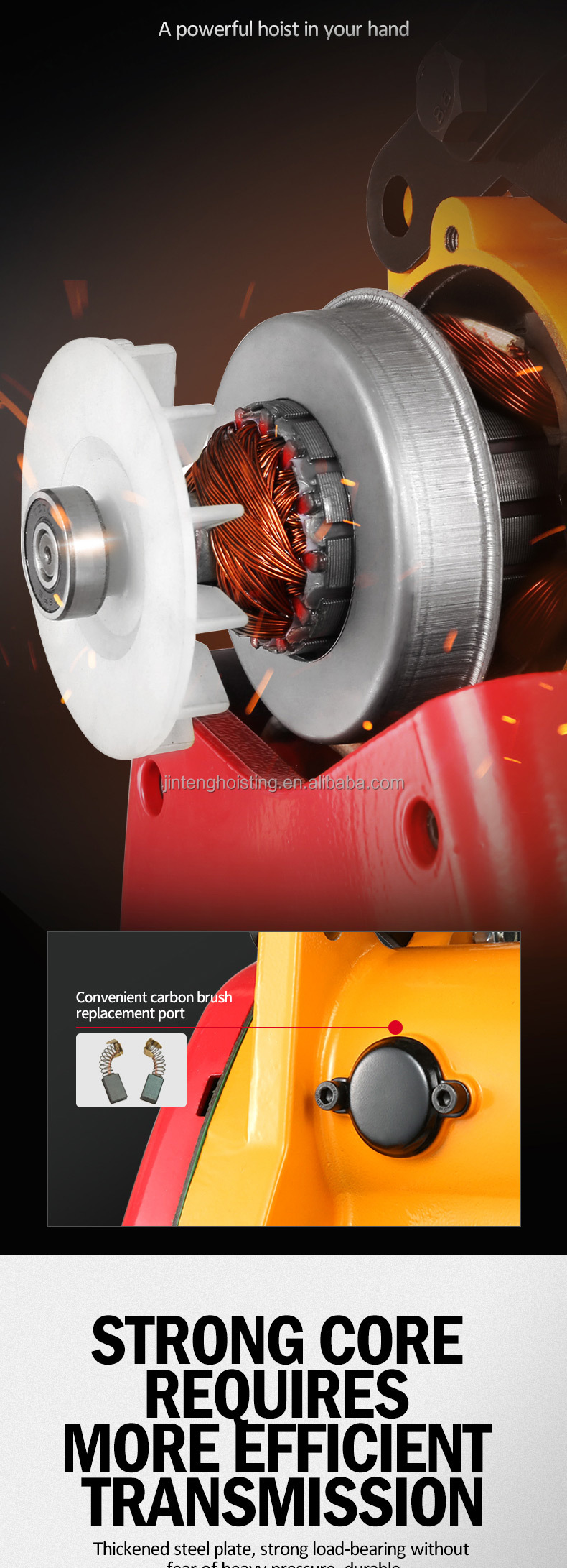 We use aluminum for this model, which is more durable.This electric hoist is very portable, weighing about 20 kg, and can be easily carried by an adult