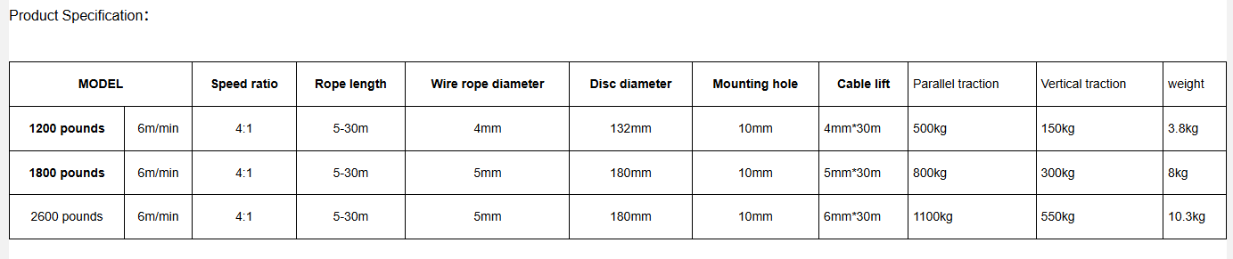 Disponible en capacidades de 500 kg a 3000 kg, con longitud y acabado del cable personalizables.