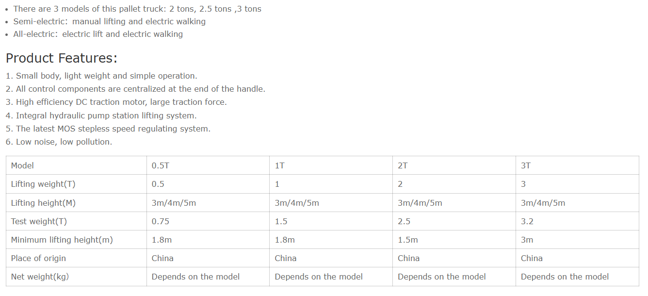 Product Name:Electric Pallet Truck